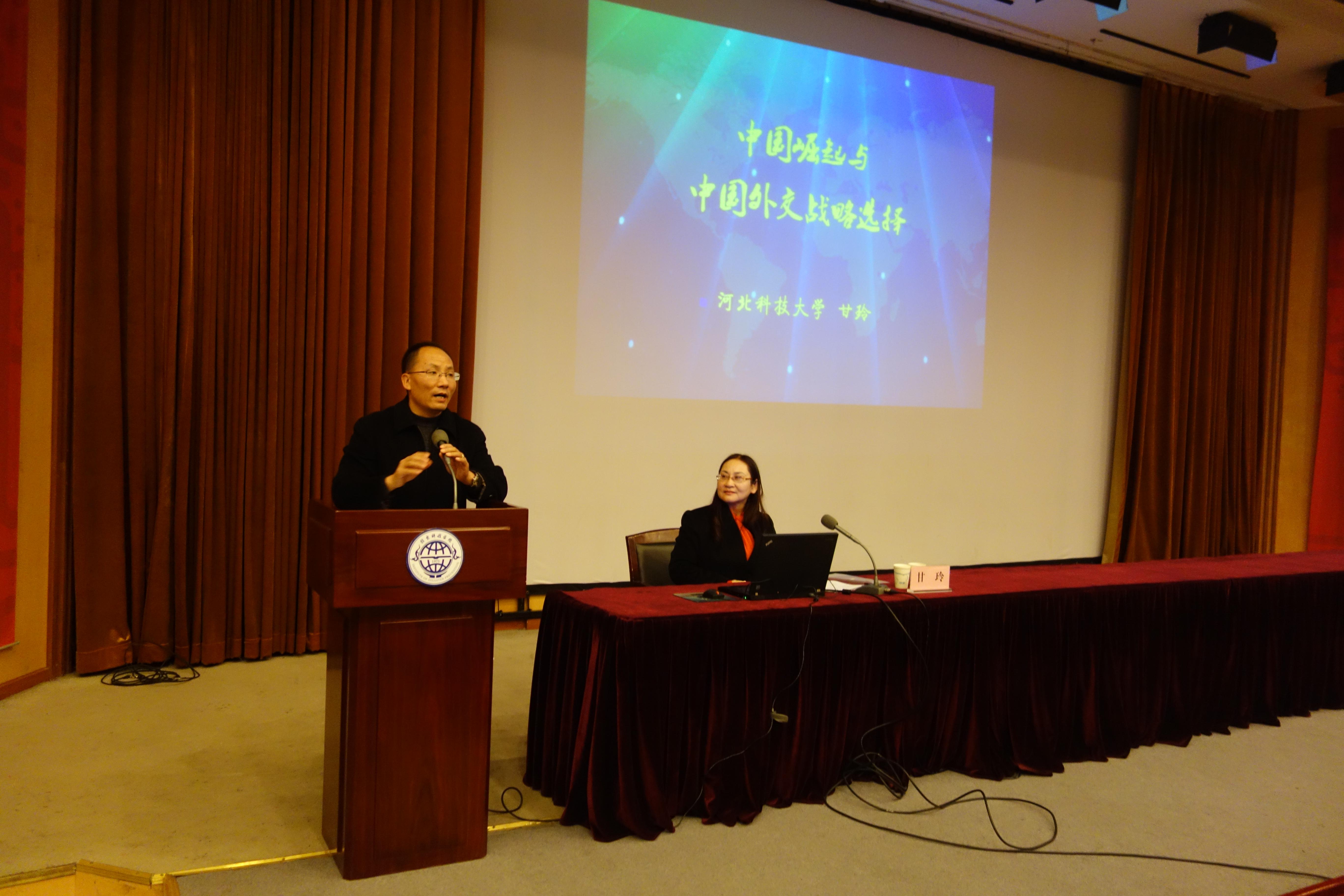 2016年11月4日,应思政部邀请,全国高校思政课教学指导委员会委员、河北科技大学beat365英国官方网站院长甘玲教授在图书馆报告厅给beat365400余名师生作了题为“中国崛起和中国外交战略选择”的时事报告。报告从中国崛起面临的形势与挑战、中美两大国的碰撞与竞争、中国外交从危机管理到战略推动三个方面,深刻解析了中国和平发展所面临的复杂严峻的国际形势和我们积极主动的应对战略,报告站位高、思路清、内容丰、案例精、分析透,使听讲者深受教益。