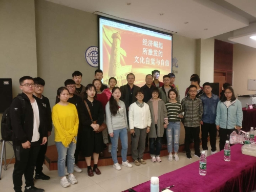 2018年4月12日,受思政部邀请,摩罗(原名:万松生)教授在图书馆多功能厅做了题为“中国经济崛起所激发的文化自信”的报告。思政部教师及学生共100多人聆听。报告主要从一百年来中国流行的自我认知模式、中国经济崛起激发的自我认知变化和战略雄心、如何理解今日我国的世界地位、中国崛起的奥秘在哪里、中国的文化优势在哪里等五个方面做了讲解。报告结束后,贾作璋主任做了总结。此次报告贯穿十九大精神增强了同学们的文化自信,同时也弘扬中华民族传统文化。