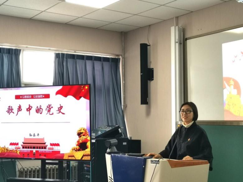 本次主题党日活动由文化与传播学院党总支书记侯英同志主持,两院教工党员参加,孙乐平同志以“歌声中的党史”为主题给全体党员同志上了生动一课。宣讲内容包括开天辟地、星火燎原、万水千山、解放战争、改天换地、改革开放六个部分,以时间为经纬,以音乐为坐标,讲述中国共产党百年征程孕育出的经典红色音乐作品,如《南湖的船党的摇篮》、《五四纪念爱国歌》、《秋收起义之歌》、《黄河大合唱》《红梅赞》、《在希望的田野上》、《走进新时代》等等。这些特色鲜明的歌曲,凝聚着中华民族由危亡走向新生继而迈向辉煌的厚重历史,记录着中国共产党领导中国革命、建设、改革、奋进新时代的恢弘历程,是中国共产党人红色基因和中华民族宝贵精神财富的重要组成部分,蕴含着丰富的时代记忆,穿越时空而历久弥新。