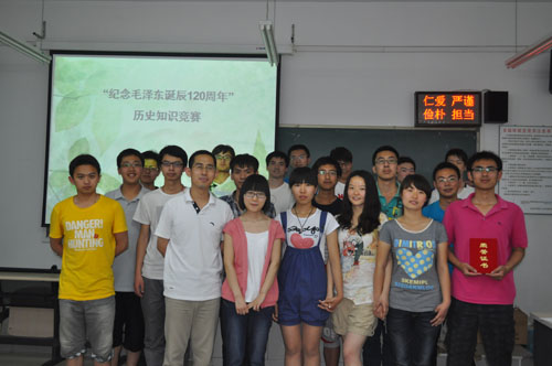 今年是伟大领袖毛泽东诞辰120周年,他是中国革命家、战略家、理论家、诗人,中国共产党、中国人民解放军和中华人民共和国的主要缔造者和领袖,毛泽东思想的主要创立者。2013年5月31号晚上7点30分,我历史文化协会特此举办了关于毛泽东知识竞赛的问答活动。