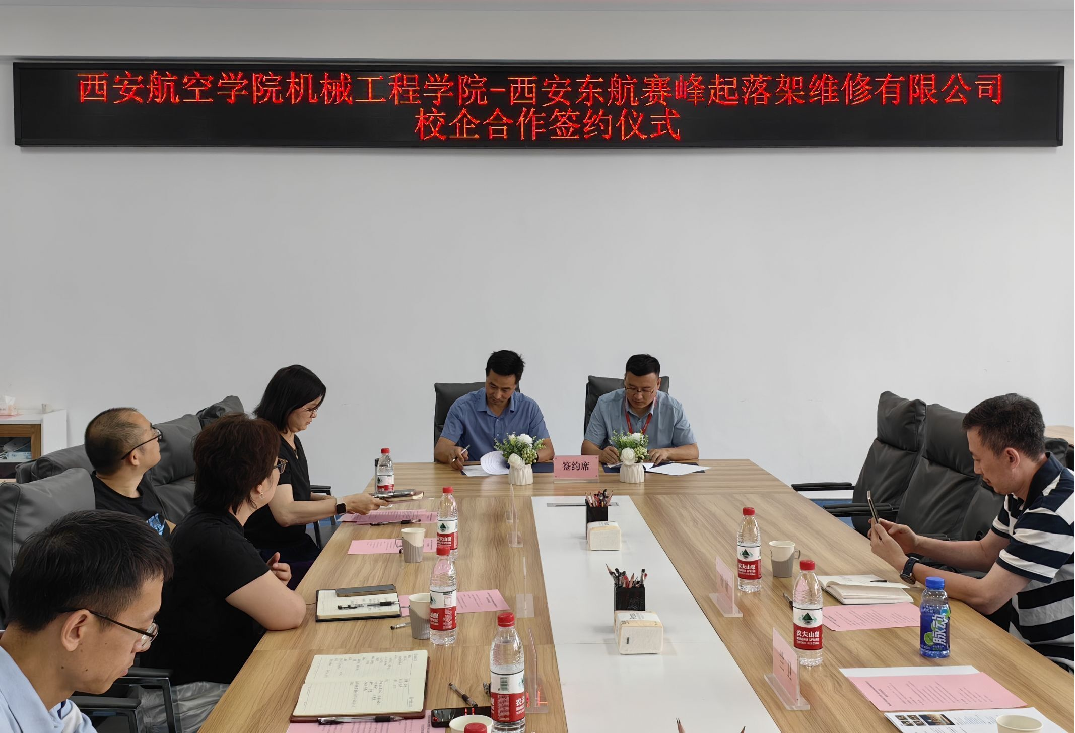 2024年6月19日下午,西安东航赛峰起落架系统维修有限公司与开云开云kaiyun官方网站举行了校企合作签约仪式。西安东航赛峰起落架系统维修有限公司人力资源总监兰卫、人力资源部招聘主管杨斌,开云kaiyun官方网站院长王永锋、党总支书记孙茉莉、党总支副书记刘欣、院长助理董桂华、机械电子工程教研室主任许睿出席签约仪式。签约仪式由郭悦涵主持。