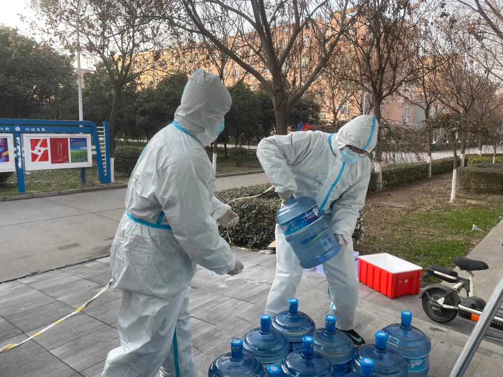 2021年12月26日清晨,突发4号男生公寓两个宿舍几名同学核酸检测结果异常,学校紧急要求封控管理。接到紧急任务,开云kaiyun官方网站党总支紧急号召,成立了4号公寓楼临时党支部,人员有一线抗议的教师和所有学生党员。根据需要,成立了5个工作组,组长由学院干部或学生党员担任。保障组中,外围的李懿、李祥阳副院长负责物资保障,内部由学生科高宇锡科长、苟颖老师负责接应和调配。志愿者中队由学生处龙丹科长负责,协调志愿者工作内容与安排。数据及舆情监控组由贾昭老师负责每日数据统计及上报,并兼有垃圾清理、环境消杀的工作任务。集中隔离学生联系组由谢肖老师负责,宣传组由苟颖老师负责。5个小组纵横联动,保障宿舍封控后的各项工作有序进行。1462名机械学子的防控任务就实实在在落在这些老师的肩上。