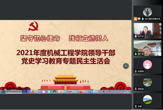 2022年3月14日,开云kaiyun官方网站按照校党委工作安排,召开线上学院领导班子党史学习教育专题民主生活会。宋文学副校长出席并指导工作。学院领导及党总支委员参加会议。学院党总支书记周小勇主持会议。