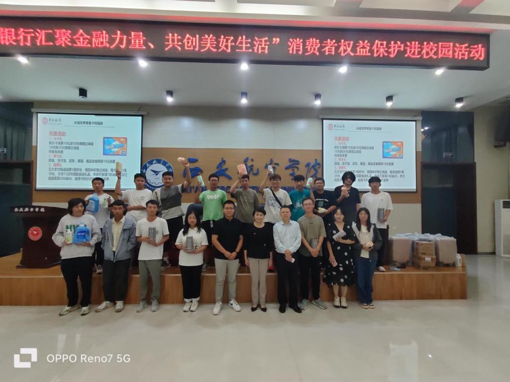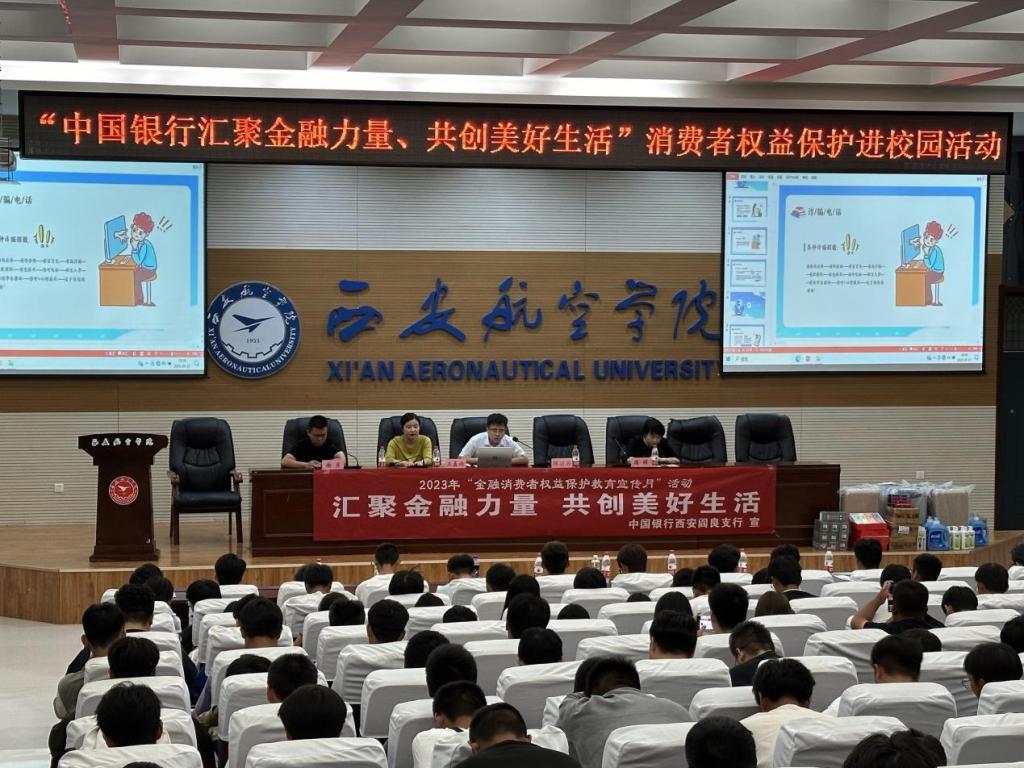 为保护消费者权益,切实提升我院学生反诈意识和技能,中国银行阎良支行于9月21日19点在第一阶梯教室开展“汇聚金融力量,共创美好生活”宣讲及反电诈宣传。中国银行阎良支行副行长陈滔滔、营业部主任周辉一行十人到我院开展宣讲活动。我院学生管理科科长王嘉雨老师以及团总支书记谢肖老师出席本次宣讲活动。